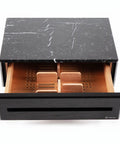 Every slab of solid Nero Marquina Marble is sourced directly from the Spanish region of Markina. The stone's profound black is crossed by natural lightning veins, making your humidor a one-of-a-kind abstract expressionist canvas. The Stealth Humidor is a piece of geology and Italian architecture, not merely a storage box. This exclusivity guarantees that your piece will never be replicated.