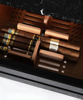 We present our Premium Humidor, the indispensable ally for preserving the integrity and unmistakable aroma of your most prized collection. Crafted with selected woods, this humidor combines sophisticated, elegant aesthetics with impeccable functionality.